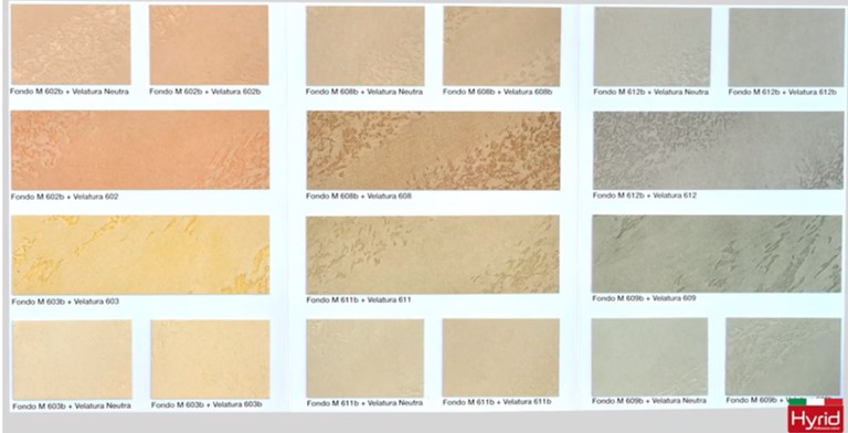 - La posa di un fondo materico a spessore e la sua lavorazione per ottenere l’effetto decorativo desiderato (FONDO M – HYRID)